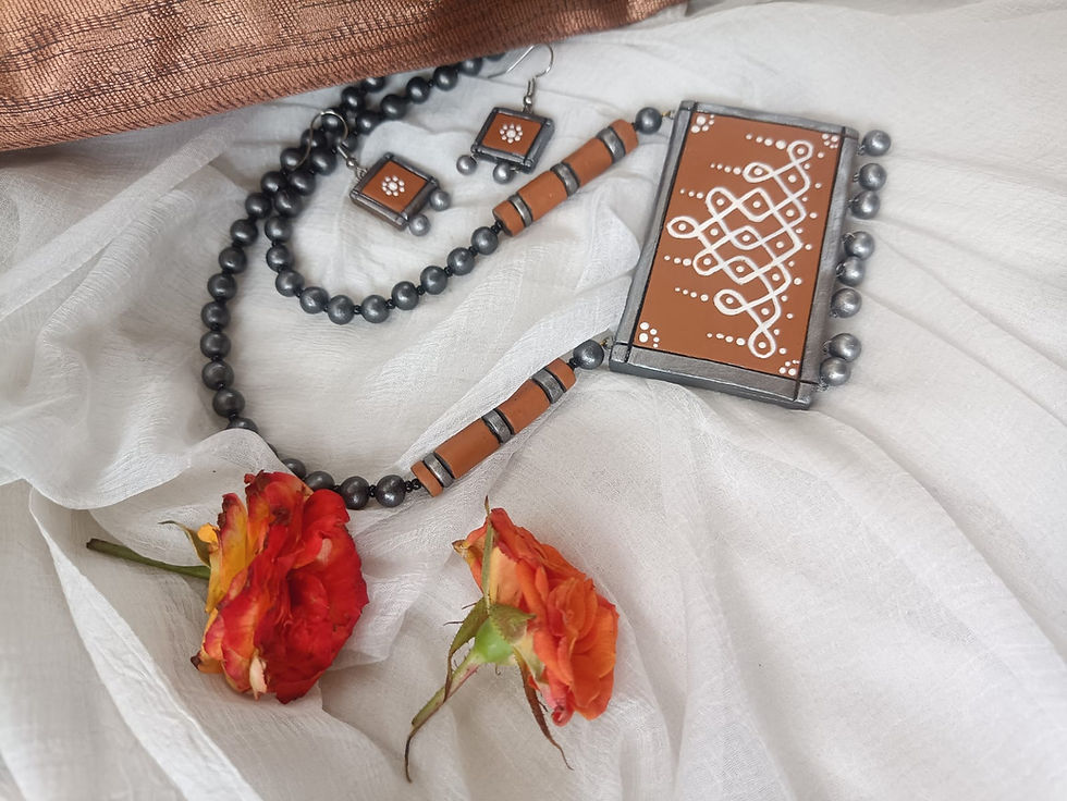 The terracotta jewellery sets are very beautiful. She is very kind hearted and serves the needs of the customer with utmost kindness. The prices are also very affordable. I wish her great success in reviving our tradition of terracotta making.